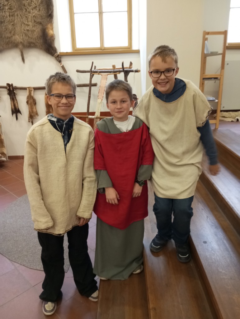 nádobí, zbraně, kostru atd.). Žáci si mohli vyzkoušet oblečení, mohli si vyrobit náramek nebo vyrazit svoji minci. Také dostali ve skupinkách úkoly